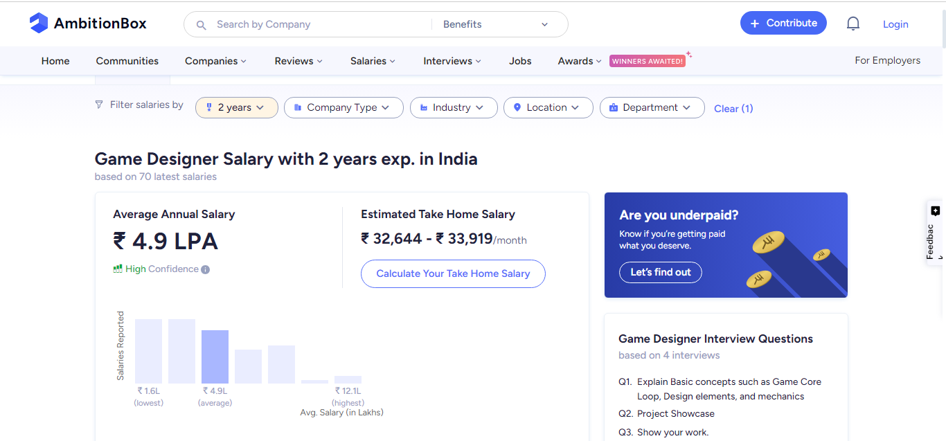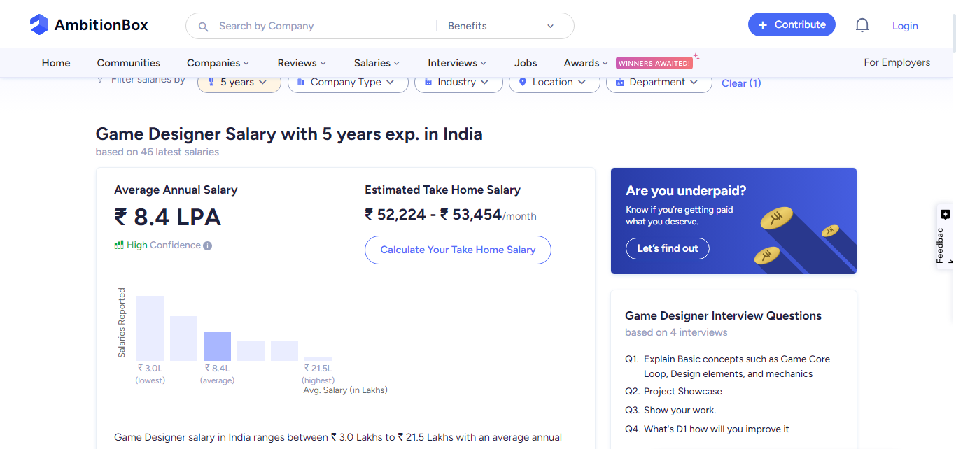 According to Ambition Box, mid-level game designers' average salary is Rs 4.9 lakhs per annum, depending on their expertise and the complexity of their projects.